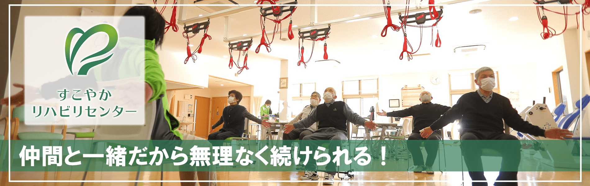 すこやかリハビリセンターは、要介護認定を受けている方を対象としたケアセンターで介護保険を使って楽しく運動しながらリハビリができます。